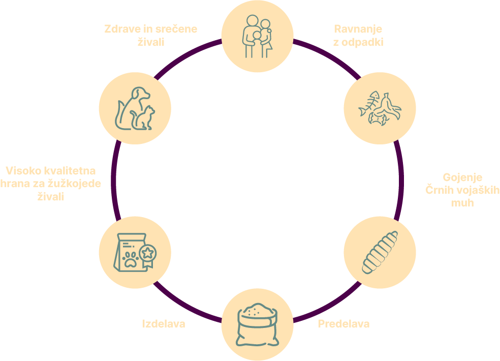 V današnjem svetu se soočamo z velikim problemom zavrženosti hrane. Po uradnih podatkih v Sloveniji zavržemo 68 kg hrane na prebivalca. Ker ima ta hrana še vedno bogato hranilno vrednost in jo je škoda zavreči, jo lahko mi s pomočjo ličink spremenimo v krmo, priboljške za naše kosmate ljubljenčke ali celo v bogato gnojilo.