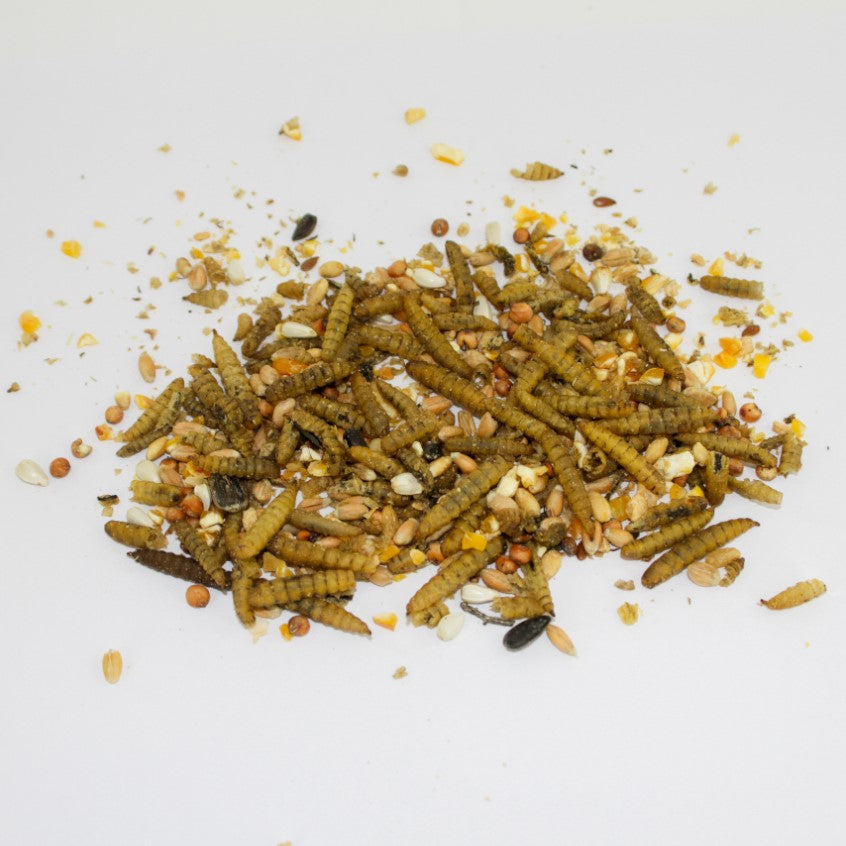 Idealna žitna mešanica za perutnino z visoko kakovostnimi beljakovinami iz ličink črne vojaške muhe.